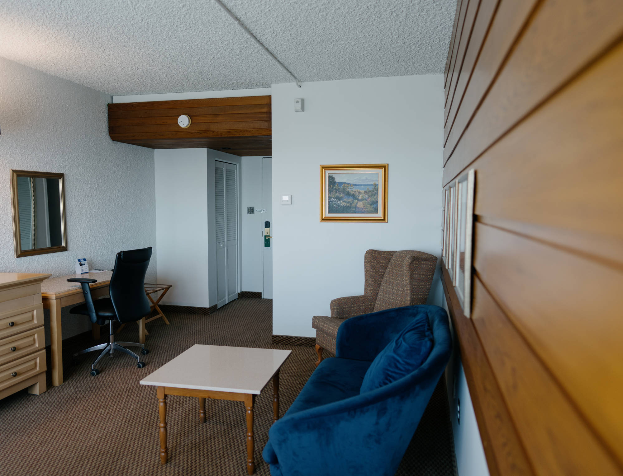 La suite se compose d’une chambre adjacente à un espace salon pour permettre aux voyageurs de se détendre après une journée bien remplie. Située aux niveaux supérieurs de l'hôtel avec un accès privatif, seules les personnes munies d'une carte de l’étage peuvent y accéder, proférant un niveau de quiétude ultime. Notre literie de qualité supérieure vous assurera une nuit paisible et sans bruit, pour un moment de plénitude à Sept-Îles.
