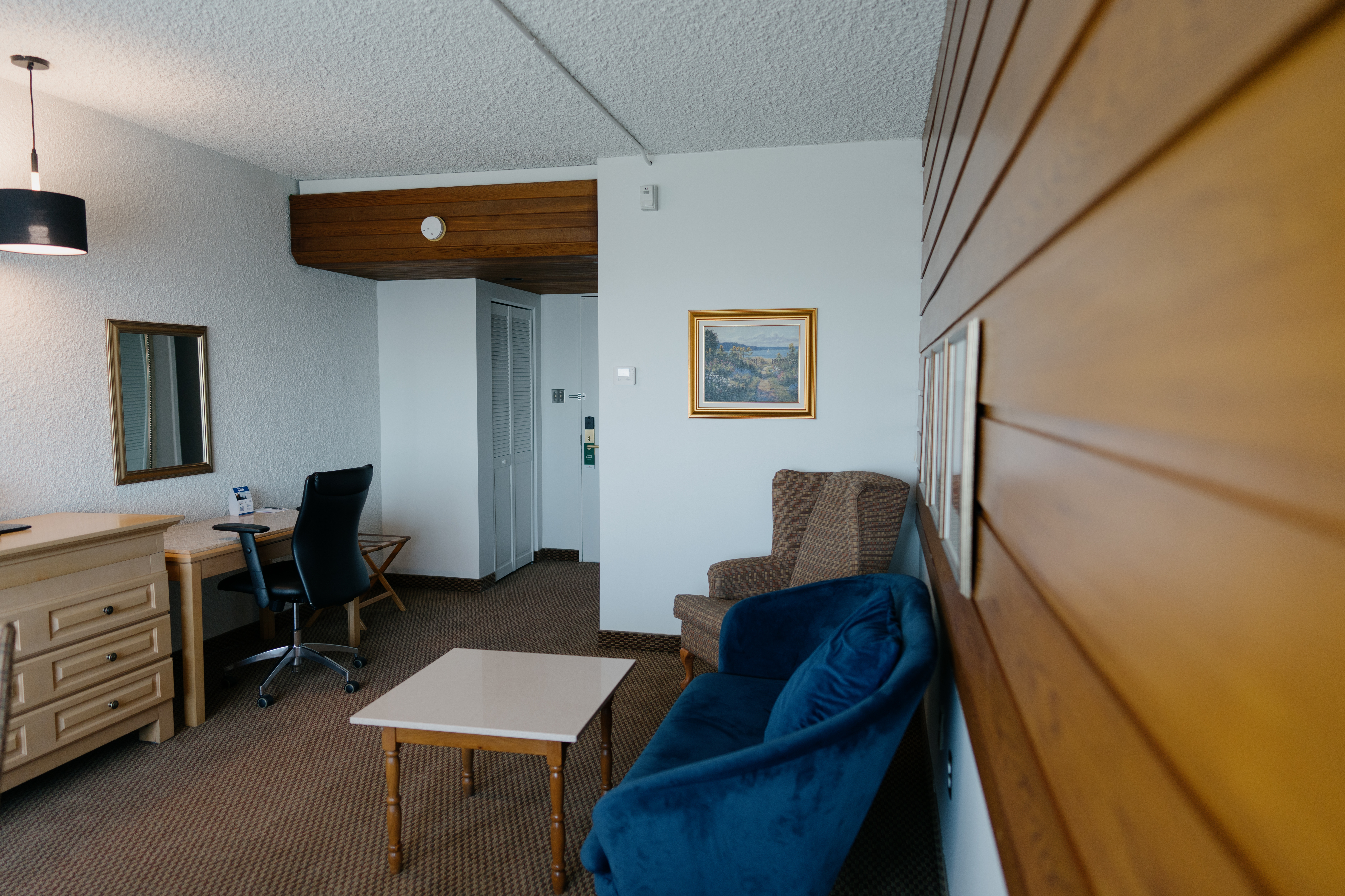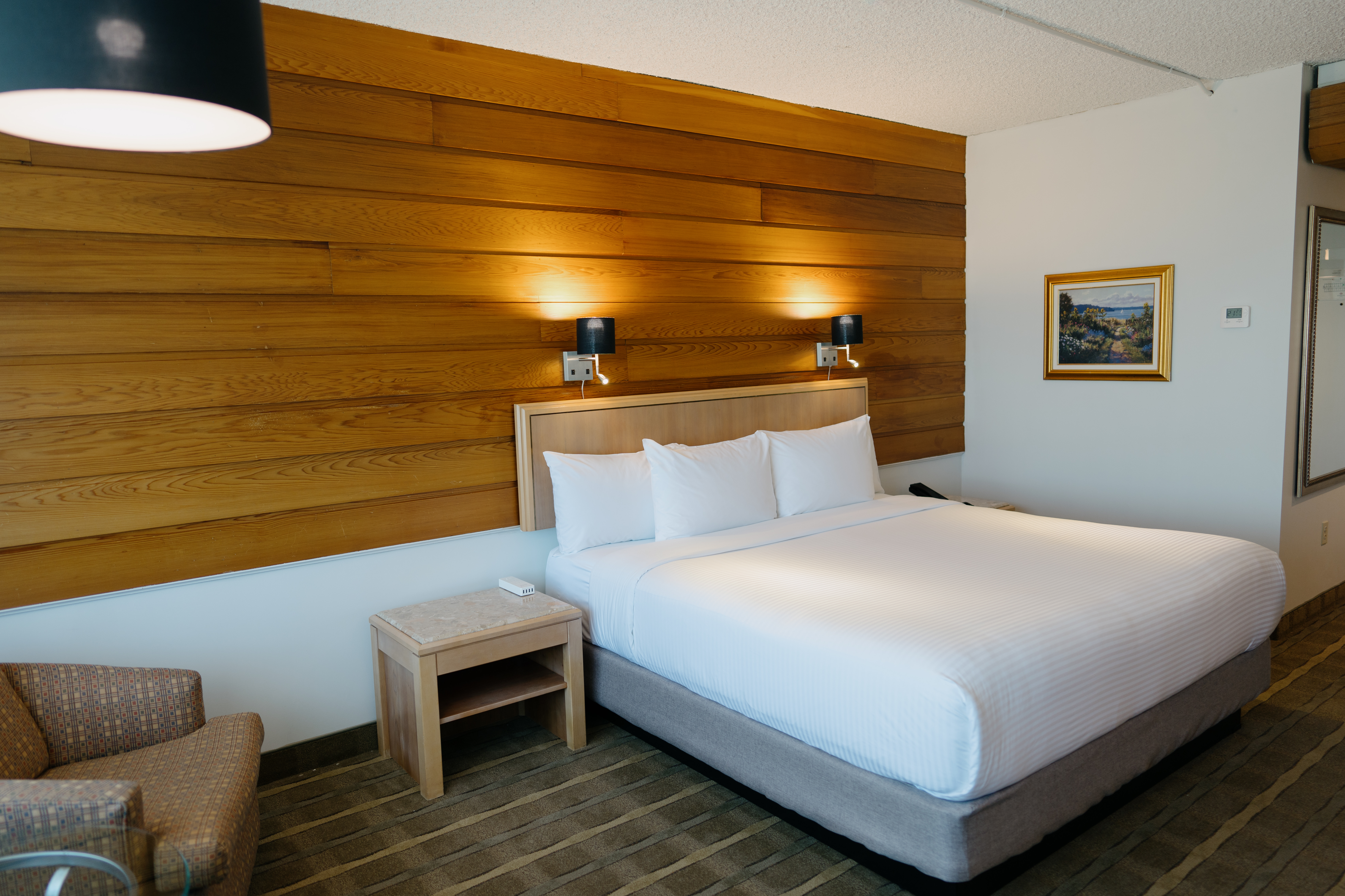The Suite is composed of a room and a complete separate living room to allow travellers to relax after a busy day. Located on the upper levels of the hotel with private access, only individuals with a room access card can enter, providing an ultimate level of tranquillity. Our high-quality bedding will ensure a peaceful and noise-free night for a moment of serenity in Sept-Îles.