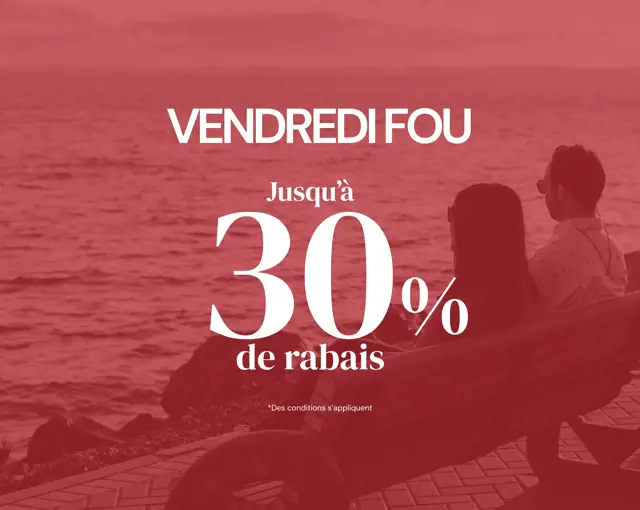 Avec le Vendredi Fou, réservez dès maintenant votre séjour à Sept-Îles et profitez d’une offre exceptionnelle allant jusqu'à 30% de rabais.