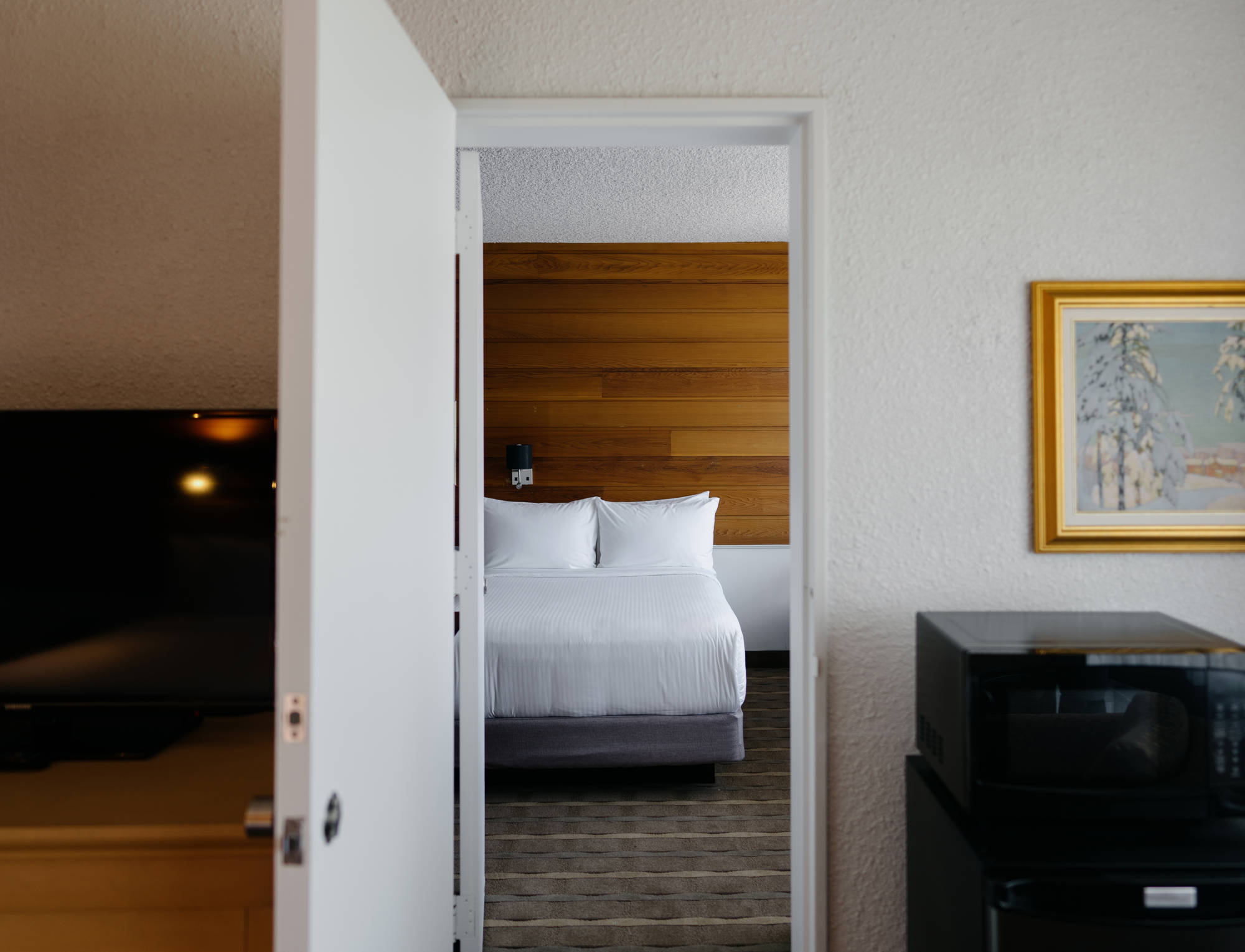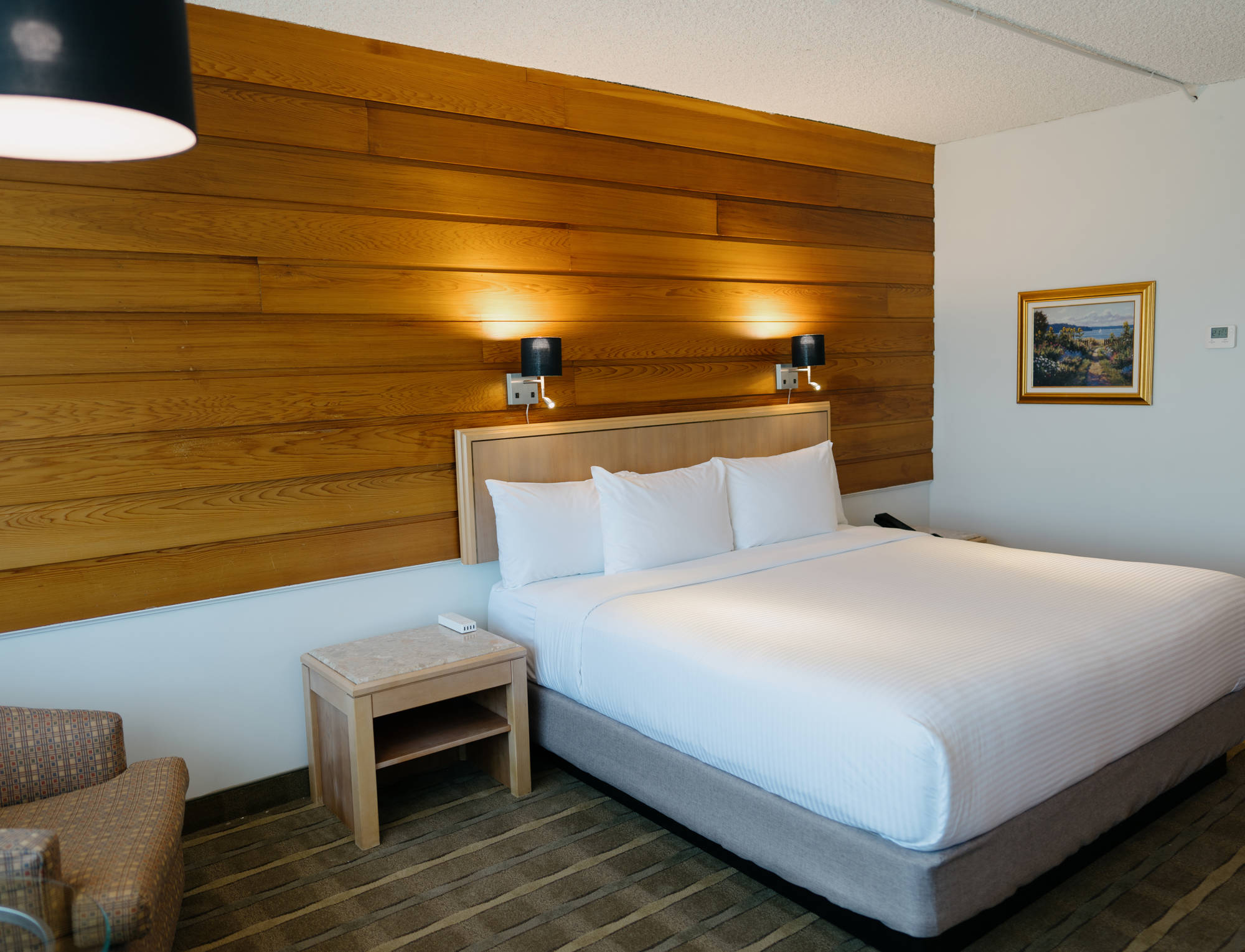 The Suite is composed of a room and a complete separate living room to allow travellers to relax after a busy day. Located on the upper levels of the hotel with private access, only individuals with a room access card can enter, providing an ultimate level of tranquillity. Our high-quality bedding will ensure a peaceful and noise-free night for a moment of serenity in Sept-Îles.